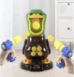Spillet Sulten and forvandler stuen til en skydesalon fuld af sjov. Anden kvæker ved træf, og den store LCD-skærm lægger et point til, så du altid har styr på scoren. Takket være de bløde skumkugler er spillet sikkert for børn og egnet til indendørs brug.
