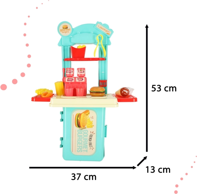 Hele sættet er kompakt opbevaret i en let kuffert, hvilket gør det nemt at tage med på ferie eller besøg hos venner og sikrer, at dit barn aldrig keder sig. Køkkenet stimulerer fantasi og interesse for madlavning, hvilket kan føre til udvikling af nye interesser.