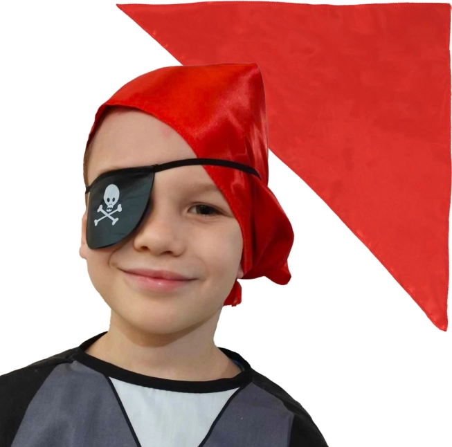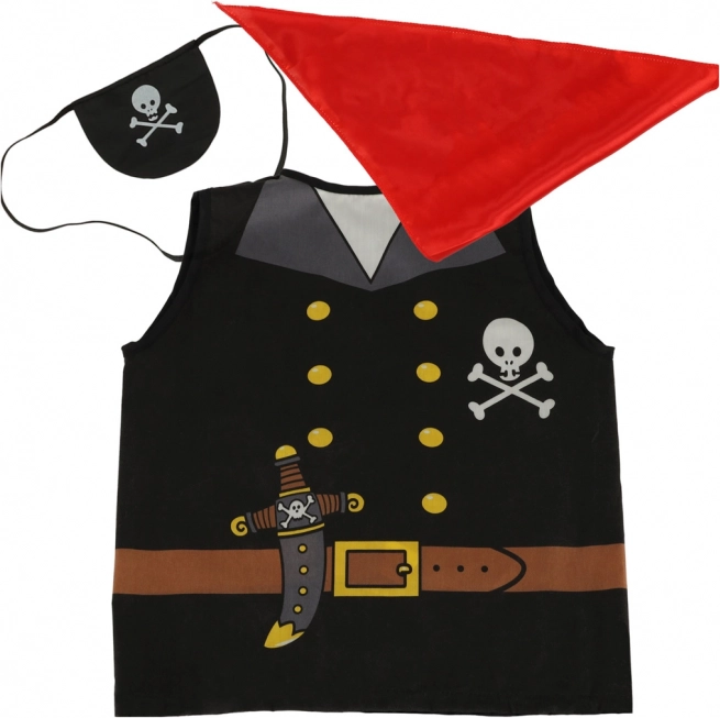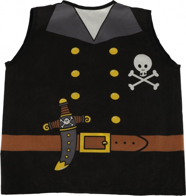 Kostumet indeholder grundlæggende elementer som vest, tørklæde og øjenklap, der giver et autentisk piratlook.