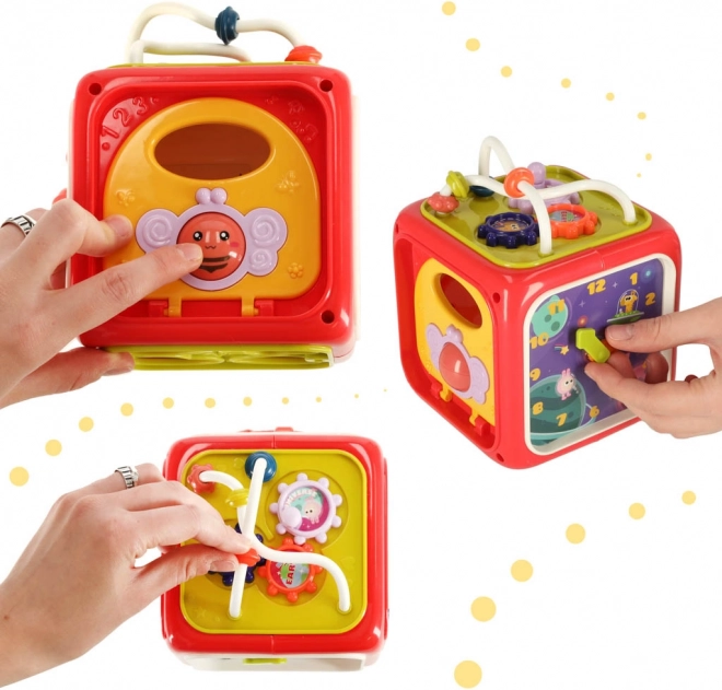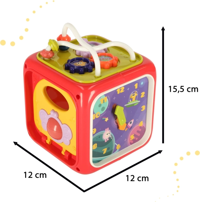 Denne uddannelsesmæssige interaktive terning tiltrækker enhver barns opmærksomhed med sin varierede skala af aktiviteter og funktioner. Den er designet til at støtte den manuelle og intellektuelle udvikling af dit barn og byder på utallige timer med sjov.