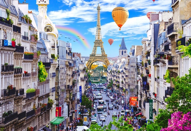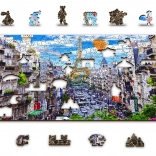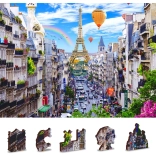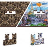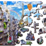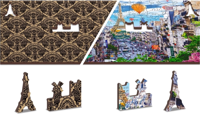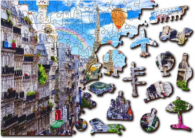 Træpuslespil Travle Paris fra WOODEN CITY er unikt med sin tosidede konstruktion og specialformede brikker, der bringer hele scenen til live under samlingen. Samlingen er mere krævende på grund af de forskellige forme, men også mere underholdende. Det er en udfordring selv for erfarne puslespilsentusiaster.