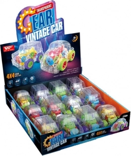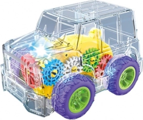 Denne sjove bil er det ideelle legetøj for børn, der elsker actionfyldte køreture. Takket være det gennemsigtige design kan børn se de indre mekanismer i bevægelse, hvilket er meget fascinerende. Bilen er udstyret med en knap til aktivering af lys og lyde, hvilket tilføjer realisme og sjov ved leg.