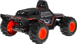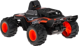 Bilen lyser i grill og på tag, har gummidæk og en bageste støddæmper for mere sikker kørsel og bedre vejgreb. Den kan køre frem/tilbage, højre/venstre og klare mindre forhindringer. Det genopladelige 3,7 V batteri er inkluderet – tilslut blot via USB‑kabel og kør.