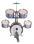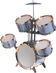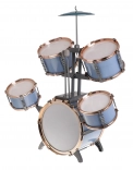 - Stortromme med pedal, 2× mellemtromme, 2× lilletromme, metalsymbal, 2× trommestik, skammel