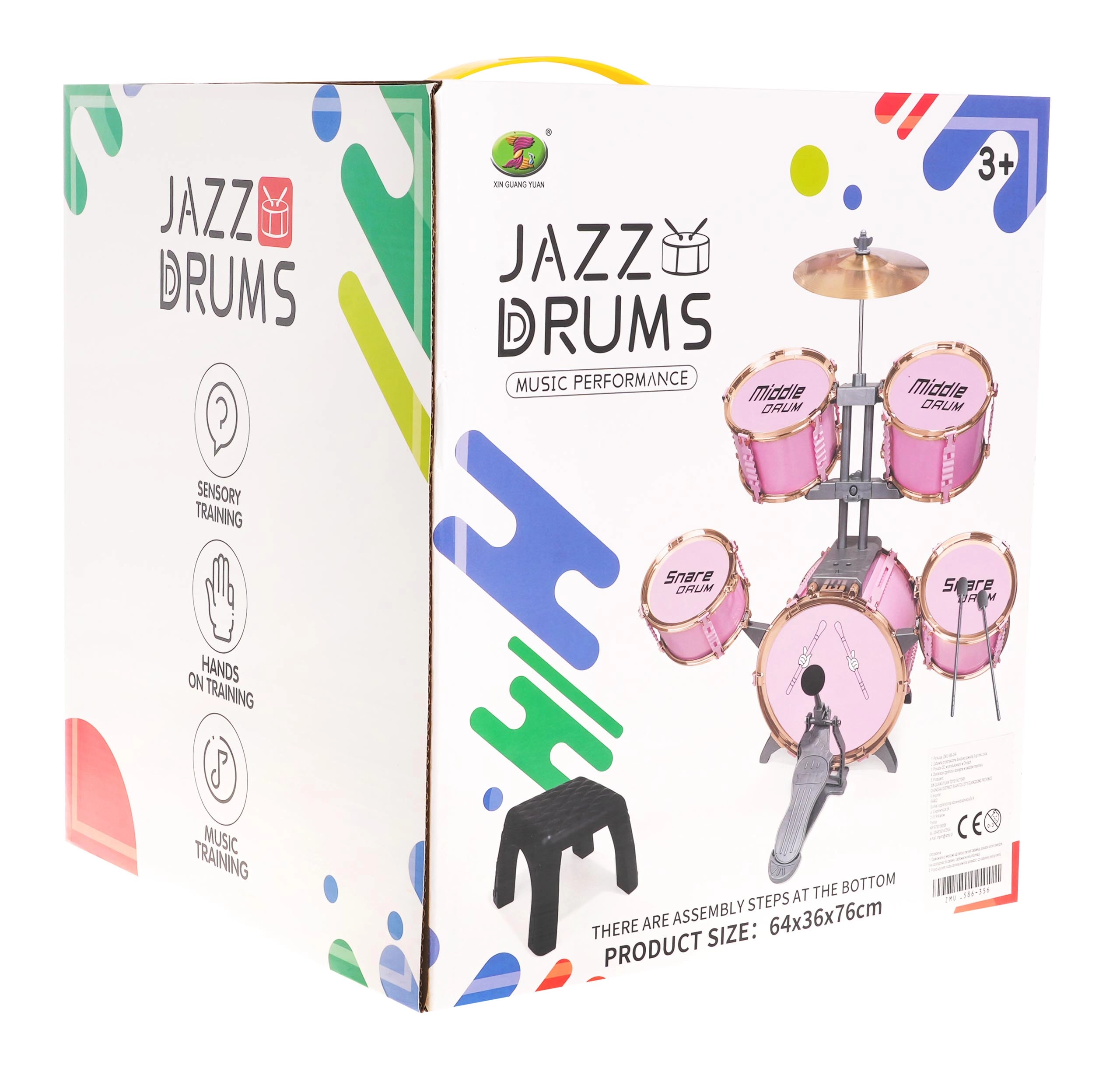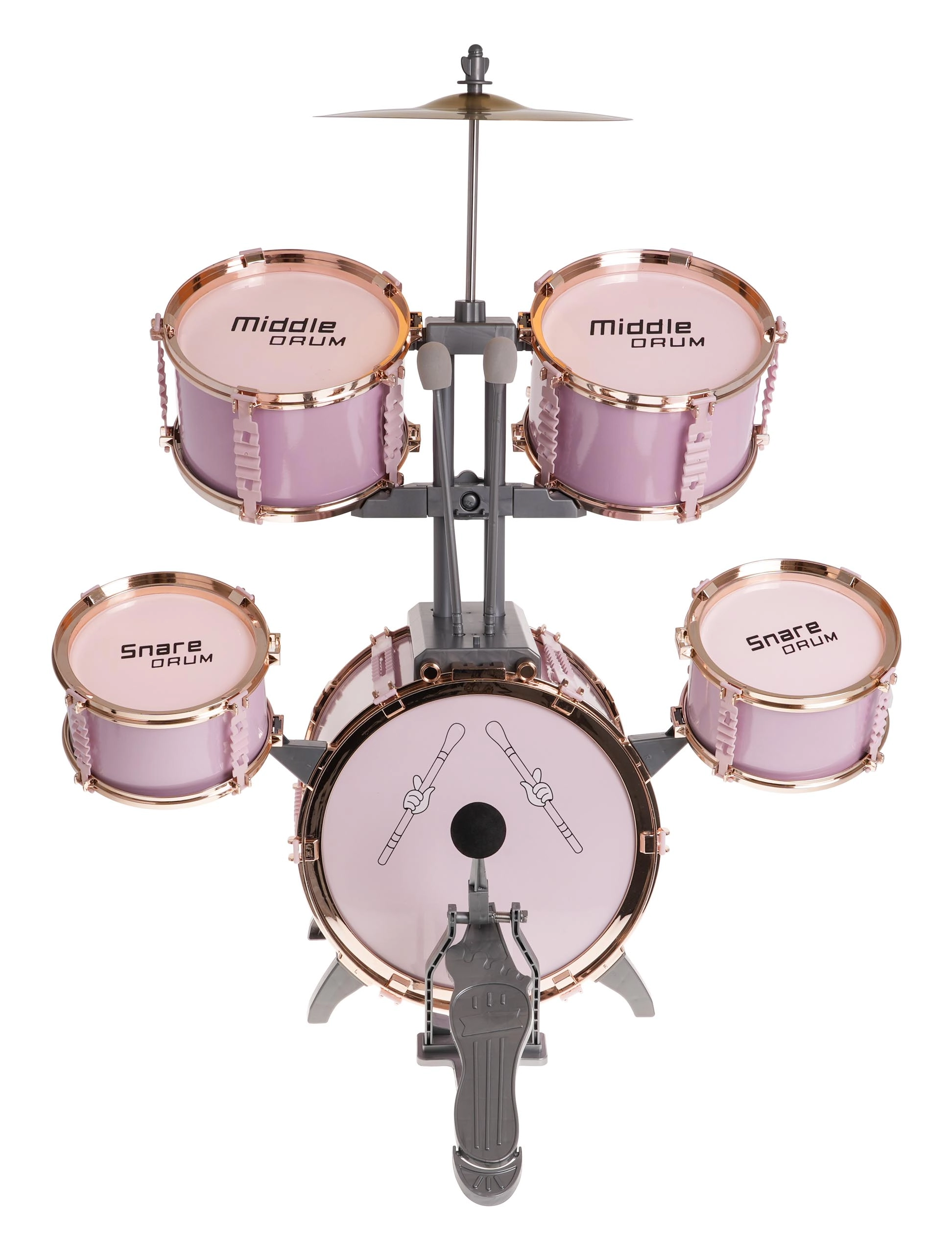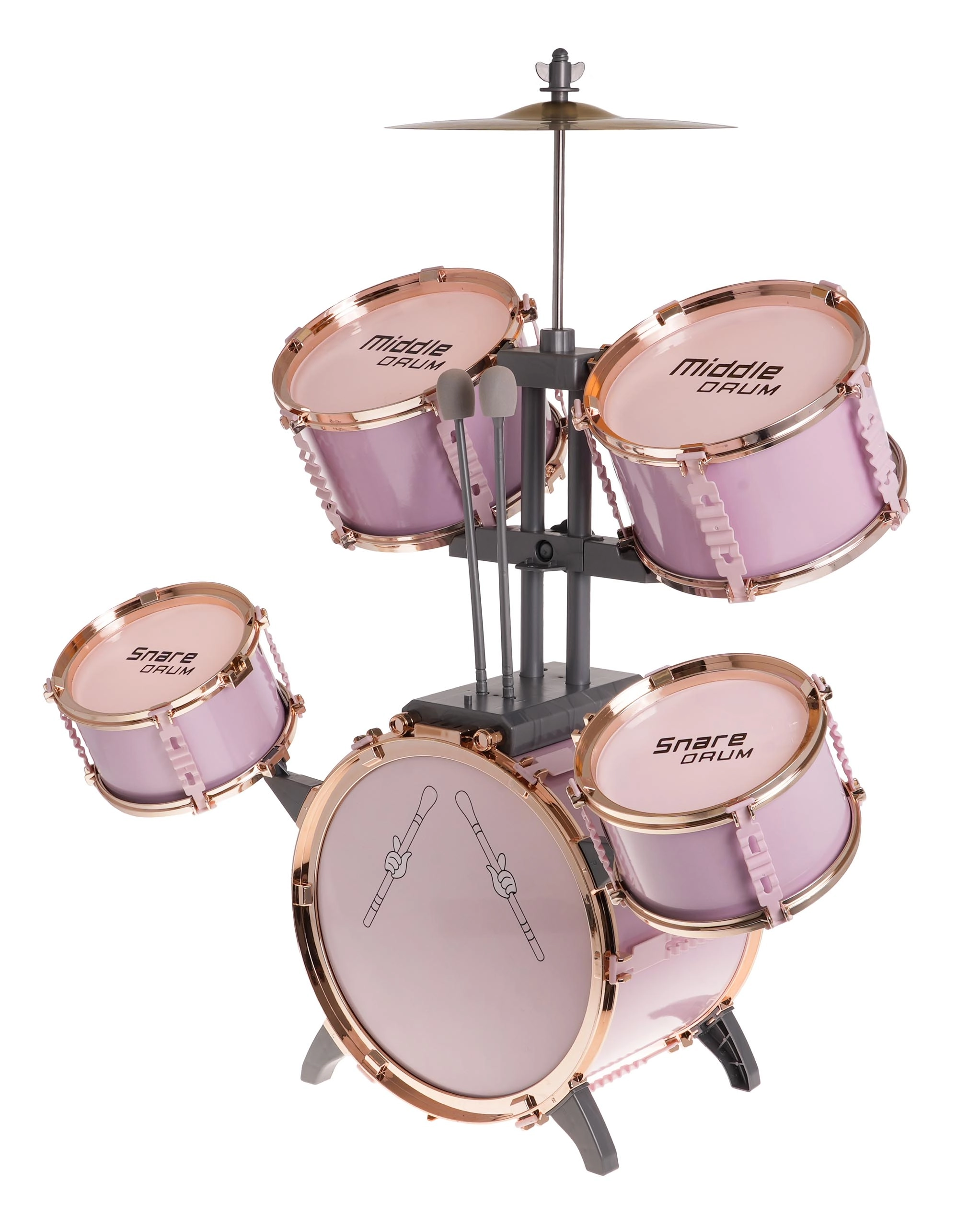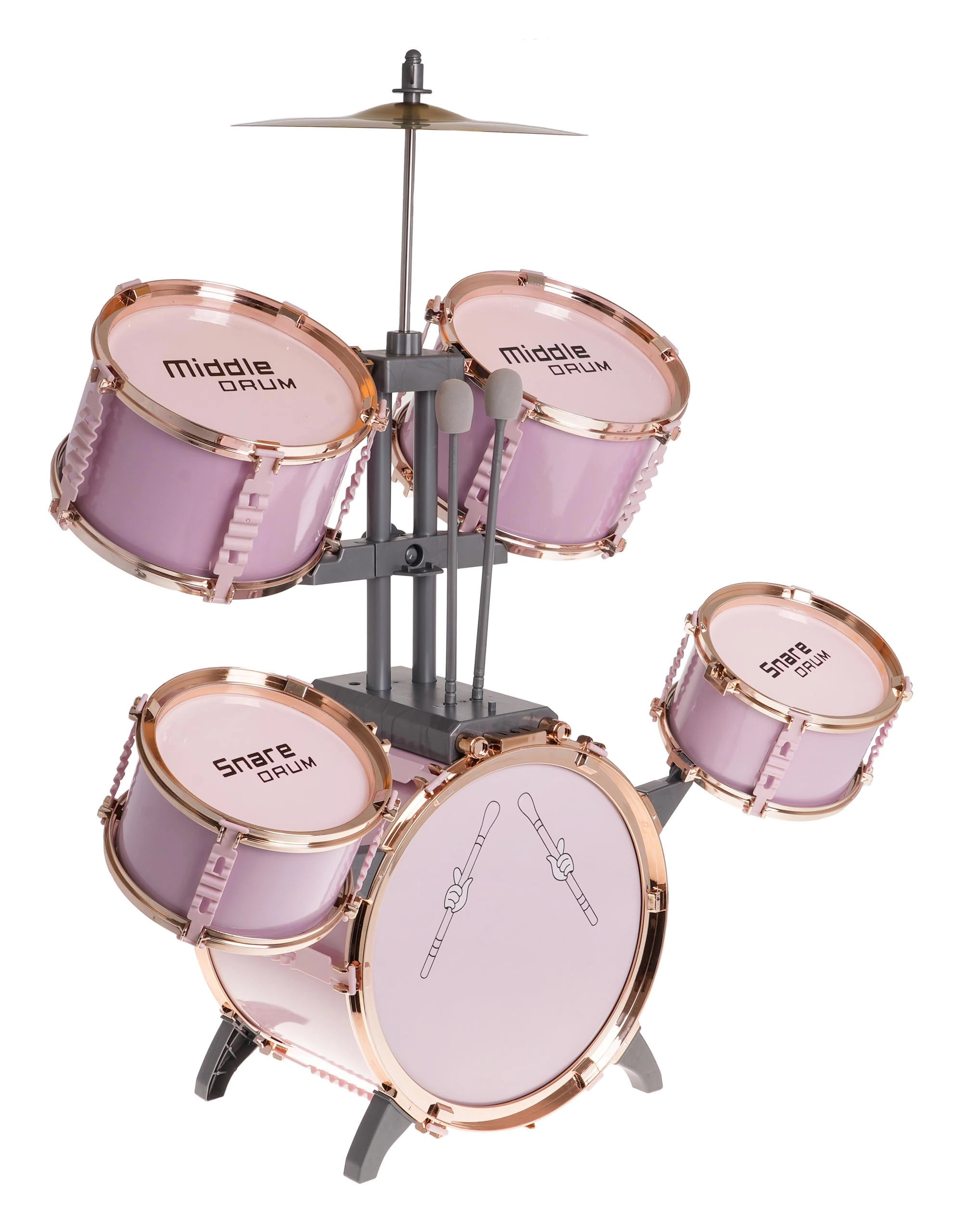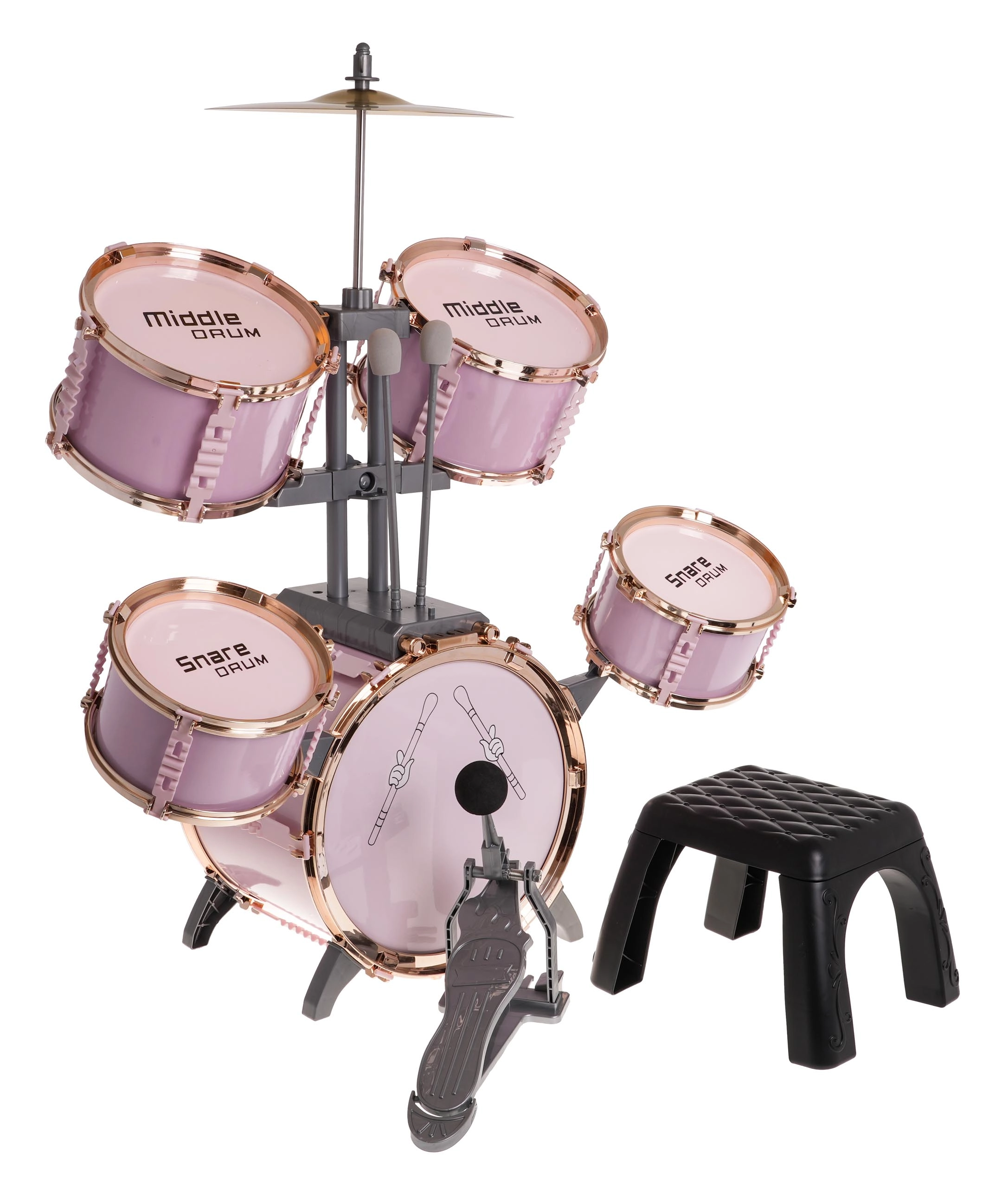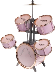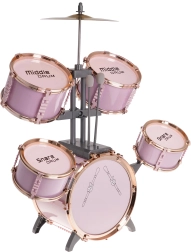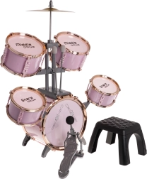 Stort rosa trommesæt med stol til børn fra 3 år. Dette legesyge musikinstrument glæder ikke kun børnene, men introducerer dem også til musikkens og rytmens verden.