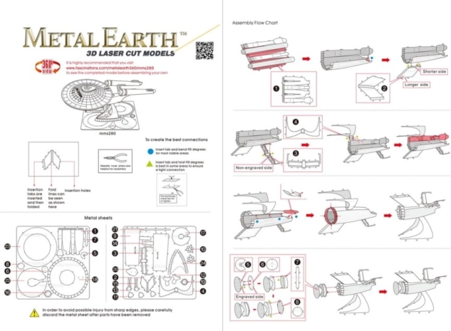 Bygningen kræver tålmodighed og sikre hænder, men belønningen er en realistisk, detaljeret model på ca. 12,7 × 6 × 6 cm. Pakken indeholder 2 stålplader med dele samt en detaljeret samlevejledning. Værktøj medfølger ikke – vi anbefaler små bidetænger og flade pincetter til præcise bøjninger og låse.