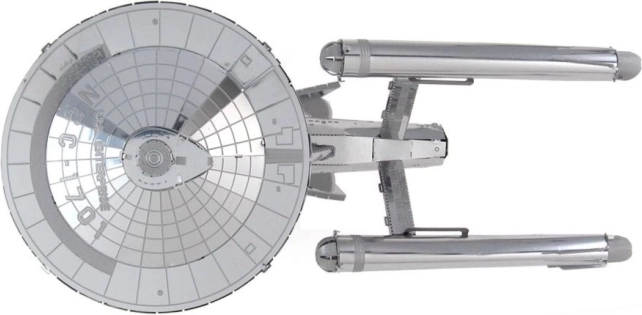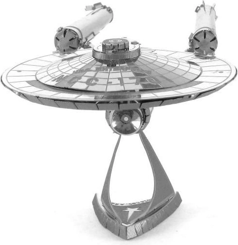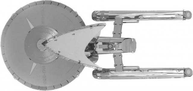 Denne 3D metalmodel af rustfri stålplader på 11 × 11 cm gengiver trofast det ikoniske rumskib U.S.S. Enterprise NCC-1701 af Constitution-klassen. Takket være lasergravering træder fine detaljer tydeligt frem, hvilket gør modellen til et attraktivt samler- og gaveobjekt for fans af STAR TREK og modellering.
