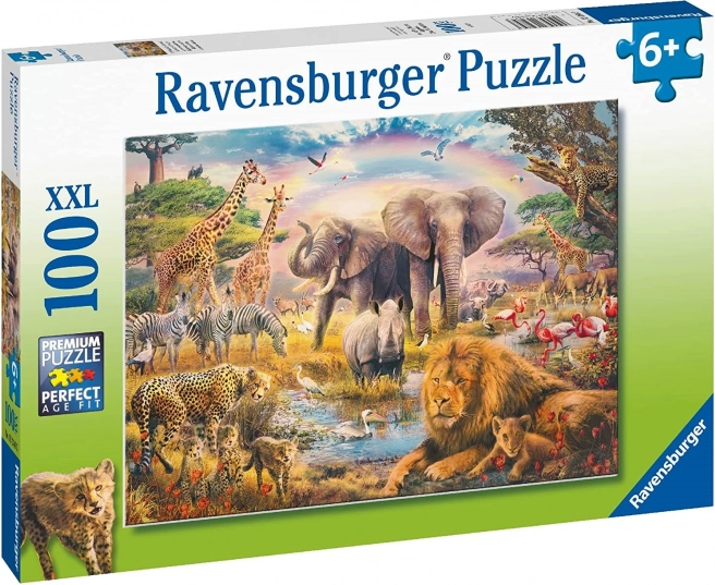 Oplev vildmarkens magi med børnepuslespillet Ravensburger African Safari med 100 brikker – kvalitetsunderholdning for børn fra 7 år, som udvikler logisk tænkning, tålmodighed og kreativitet.