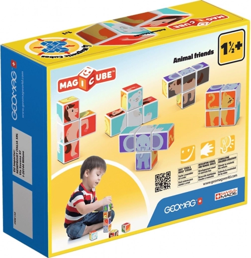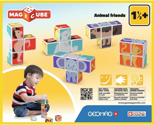 De magnetiske klodser GEOMAG Magicube Glade dyr er et ideelt første byggesæt til børn. Takket være sikre magneter forbindes klodserne fra alle sider, så små hænder nemt kan bygge 3D-modeller af dyr og enkle konstruktioner som en skorsten eller en indhegning. Farverige dyreillustrationer vækker naturligt børns nysgerrighed og læring gennem leg.