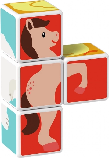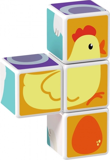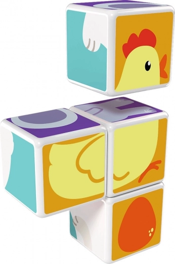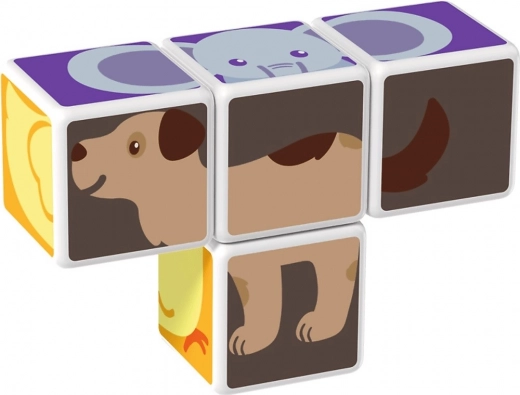 Fire magnetiske klodser forbindes fra alle sider og gør det nemt for børn at samle komplette dyrebilleder og enkle 3D-former.