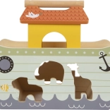 Noas Ark Safari er robust træbåd, der bringer uforglemmelige eventyr til ethvert børneværelse. Båden har et håndtag for nem transport og et aftageligt låg, der gør det let at håndtere figurerne inden i. Indeholder 15 træfigurer, herunder 6 par dyr, 2 menneskelige figurer og en stige, der passer perfekt ind i bådens huller.