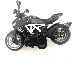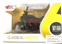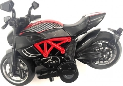 Træk op og kør med denne realistiske plastmotorcykel i skala 1:14. Ideel til samlere eller som dekoration.