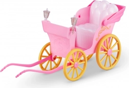 Skab dit eget kongerige og tag på en eventyrlig køretur. Prinsessen i flere lag lyserød kjole med skinnende tiara sidder i den smukke karet, som nemt kan afkobles fra enhjørningen for endnu flere legescenarier. Enhjørningen har gyldent sadel og hovedtøj, og dens lange manke og hale indbyder til at blive redt og stylet.