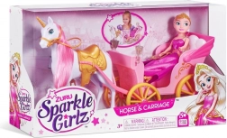 Oplev en magisk fantasiverden med sættet SPARKLE GIRLZ dukkeprinsesse med enhjørning og karet. I pakken finder du en elegant prinsesse i glitrende lyserød kjole, en fortryllende hvid enhjørning med lyserød manke og en lyserød‑gylden karet til endeløse historier. Lange redbare hår, aftagelig karet og mulighed for at bytte tøj og tilbehør med andre Sparkle Girlz‑dukker giver timevis af kreativ leg. Egnet fra 3 år.