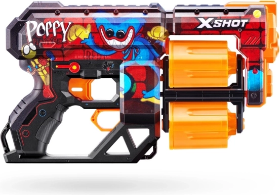 Oplev sjov med skumblasteren X-Shot Skins Dread Toony med kapacitet op til 12 pile og et markant graffiti-design inspireret af POPPY PLAYTIME. Ideel til sikker leg både inde og ude, leveres med bløde skumpile for dynamisk, men skånsom action.