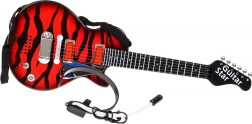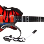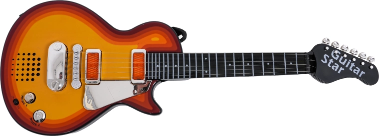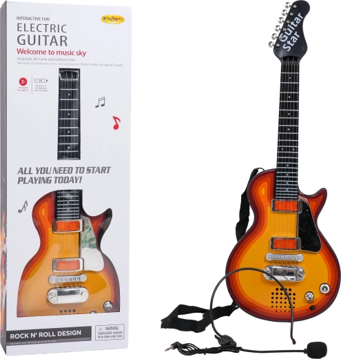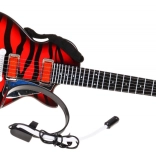 Denne elektriske børneguitar er et perfekt valg til små rockere. Den gør det muligt både at afspille en færdig rock-backing og at spille selv – ved berøring af metalstrengene giver guitaren lyd. Det medfølgende headset med høretelefoner og mikrofon tilsluttes direkte til guitaren, så barnet kan synge og spille på samme tid.