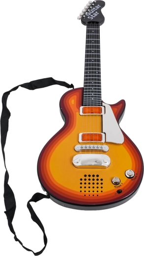 Takket være den lette konstruktion og den komfortable rem er instrumentet ideelt til børn fra 3 år. Guitarens CE-certificering gør den til et sikkert og sjovt valg til den første kontakt med musik. Strømforsyning via 3× AA-batterier (medfølger ikke).