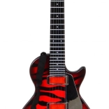 Det iøjnefaldende rød‑sorte mønster og den lette krop med rem gør den nem at holde og giver lyst til at spille hver dag.
