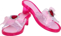 Et par lyserøde hælsandaler prydet med store røde hjerte-smykker og fine lyserøde bånd. Designet til udklædning og leg, og de efterligner perfekt prinsessesko.