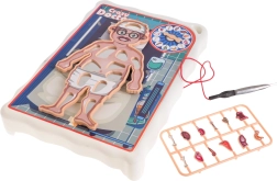 Spillet indeholder 12 forskellige steder på patientens krop, hvor organerne skal placeres korrekt. Sjovt og samtidig udfordrende spil, der lærer børn øje-hånd koordination. Spillet er beregnet til 1 til 2 spillere og kræver tre AA-batterier, som ikke er inkluderet i pakken.