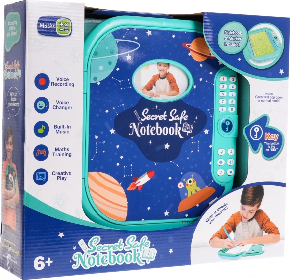 Hemmelig dagbog til børn fra 3 år, der tilbyder sjov og sikkerhed for deres noter. Fremstillet af plast i høj kvalitet, med rumtema og lydeffekter, som sikrer privatliv og interaktiv underholdning.