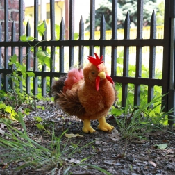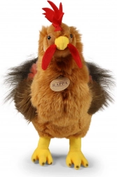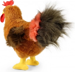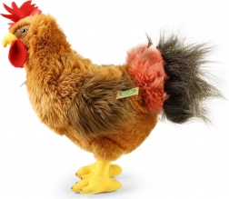 Fin syning, markant kam, farverig hale og naturtro proportioner gør hanen til både en smuk plysbamse og en dekorativ genstand.