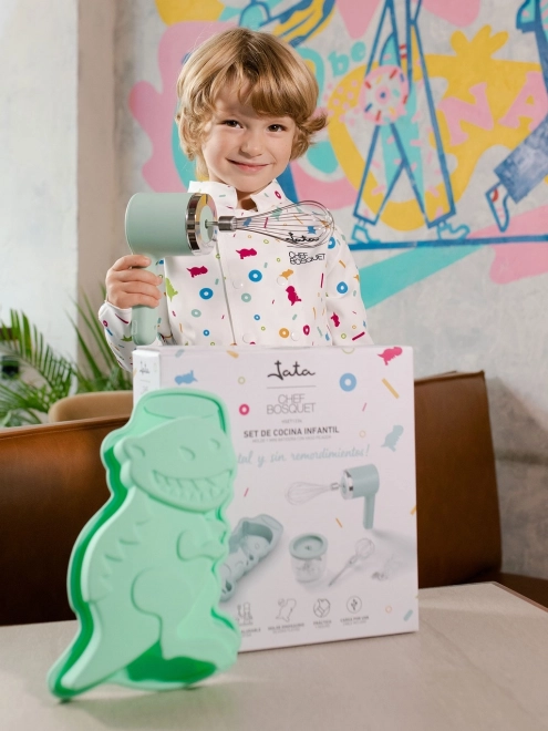 - 3 i 1 børnekøkkensæt (håndmixer, hakker, silikoneform)