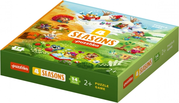 Puslespillet Fire Årstider fra mærket Puzzlika har et moderne og kreativt design, der fanger børns opmærksomhed.
