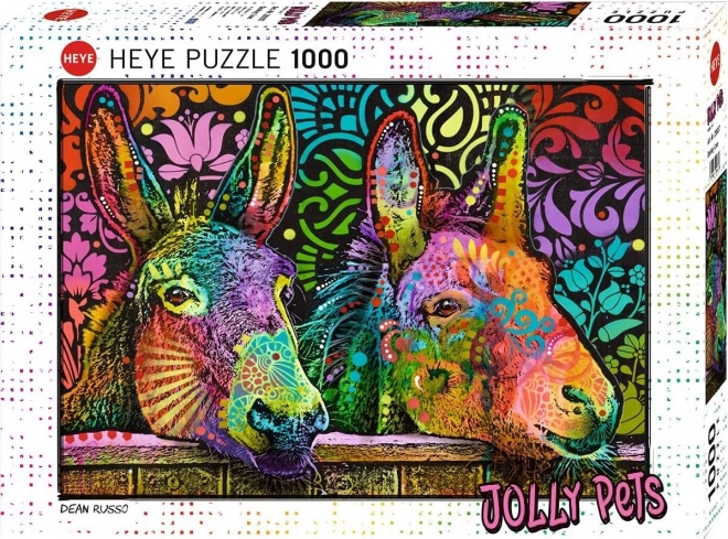 Den populære brand Heye præsenterer det legesyge motiv “Forelskede æsler” fra serien Jelly Pets. Med 1000 brikker giver puslespillet en behagelig udfordring for både begyndere og mere erfarne, og når det er færdigt, får du et flot billede på 50 × 70 cm, der tager sig godt ud i en ramme.