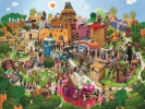 Puslespil af karikaturisten Oesterle pakket i en utraditionel trekantet æske, som indeholder en plakat som forlæg til samling. Mål på det samlede puslespil ca. 80 x 60 cm