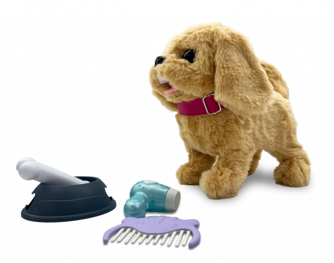 - Plyshunden Alík (beige), børste, skål, lille ben
