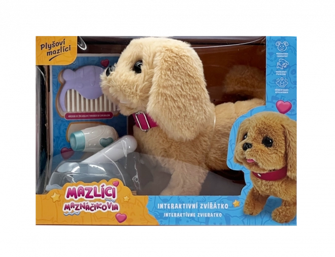 Det søde interaktive sæt med hunden Alík vil glæde ethvert barn. Hunden går, laver lyde og logrer med halen, så den minder om et rigtigt kæledyr. I pakken finder du en børste, en skål og et lille ben til leg med pleje og fodring. Understøtter fantasi, finmotorik og empati.