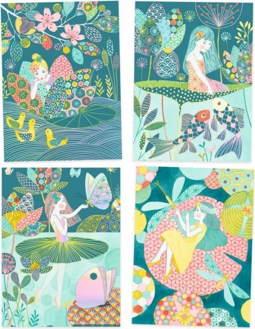 - 4 kort med smukke motiver af sø-nymfen og hendes venner