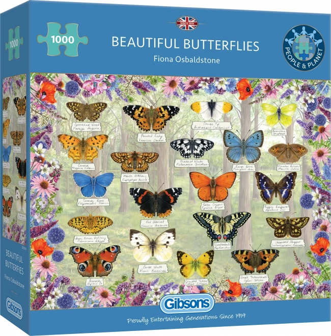 Puslespil Smukke Sommerfugle fra Gibsons med 1000 brikker, mål 68 x 49 cm. Ideelt til afslapning og underholdning.