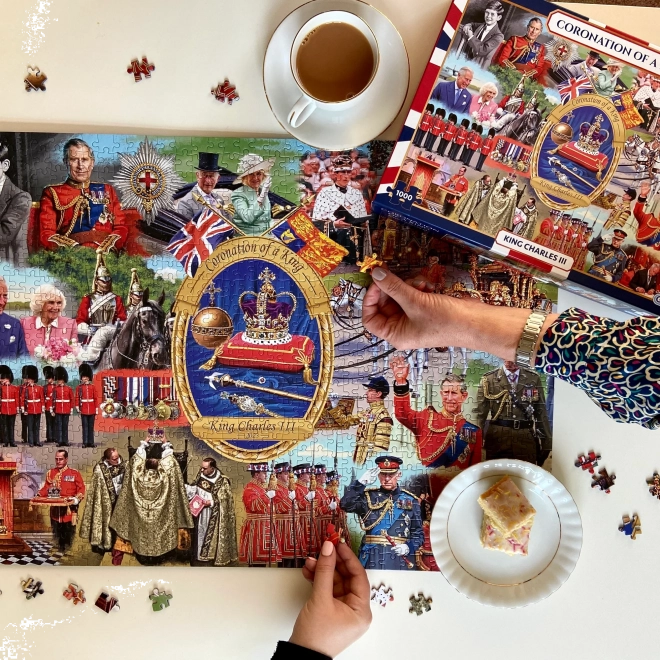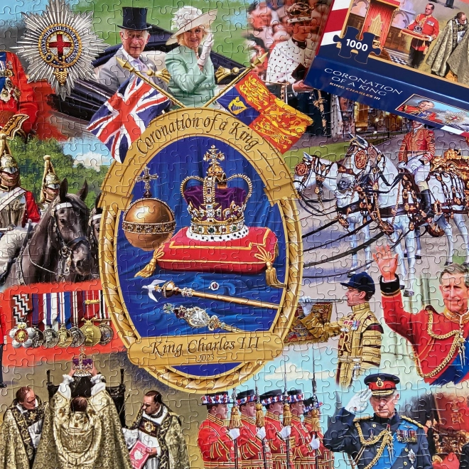 Puslespil Kroning af kongen er et smukt puslespil med 1000 brikker, som bringer et historisk øjeblik til live direkte i din stue. Ideelt til elskere af historie og puslespil!