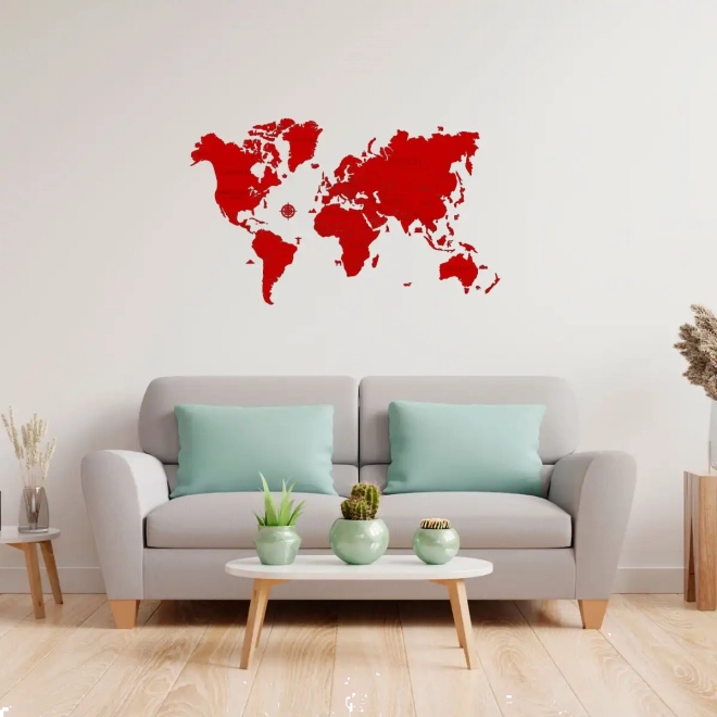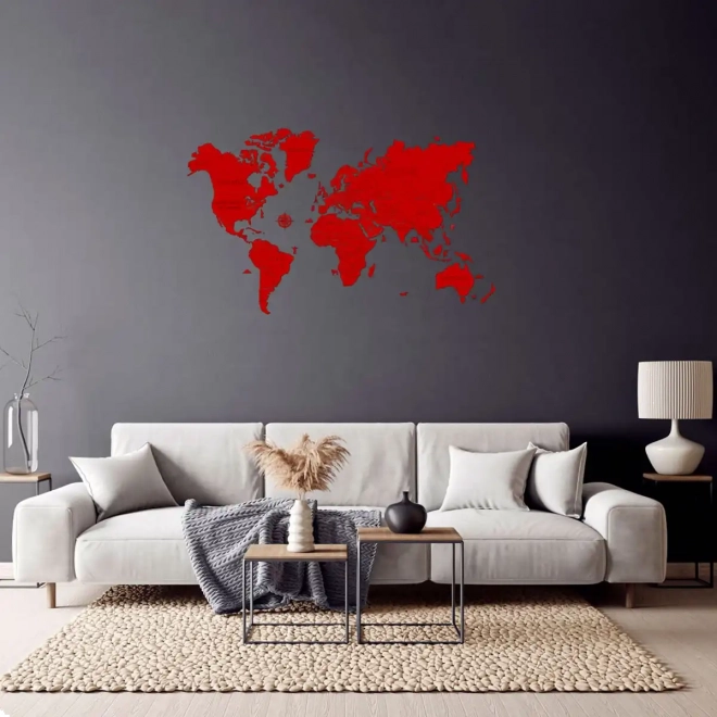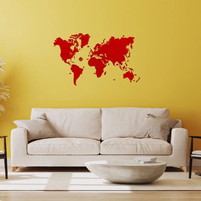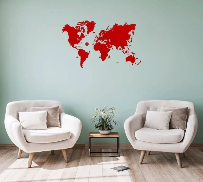 Skab et markant designstatement derhjemme eller på kontoret. Dette håndmalede træverdenskort i rød bringer rene linjer, et moderne look og nem installation med den medfølgende dobbeltklæbende tape. Takket være præcis laserskæring i birkekrydsfinér udmærker det sig ved detaljegrad og holdbarhed.