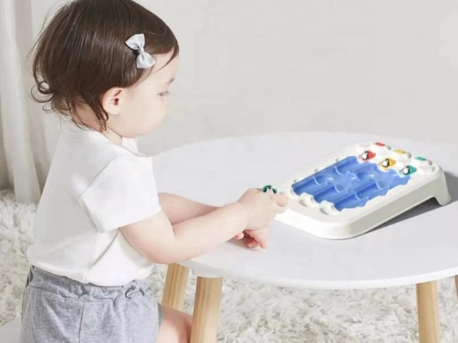 Spillet indeholder tre farverige kugler med billeder af glade pingviner, hvilket gør spillet sjovt og tiltrækkende for børn.