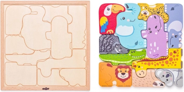 Dette træpuslespil med eksotiske dyr er det perfekte første puslespil til de mindste. De store, farverige brikker er lette at holde og hjælper børn med at træne finmotorik, koordination og logisk tænkning. Hver brik har klare farver og et venligt design, som understøtter visuel perception og genkendelse af former.