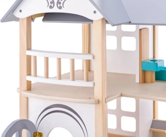 Dette smukt udførte dukkehus er et ideelt supplement til børneværelset. Med målene 53 x 32,5 x 51 cm giver det rigelig plads til at arrangere det medfølgende møblement. Dukkehuset er lavet af naturligt træ med pastelfarvede accenter og er velegnet til børn fra 3 år.