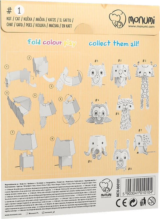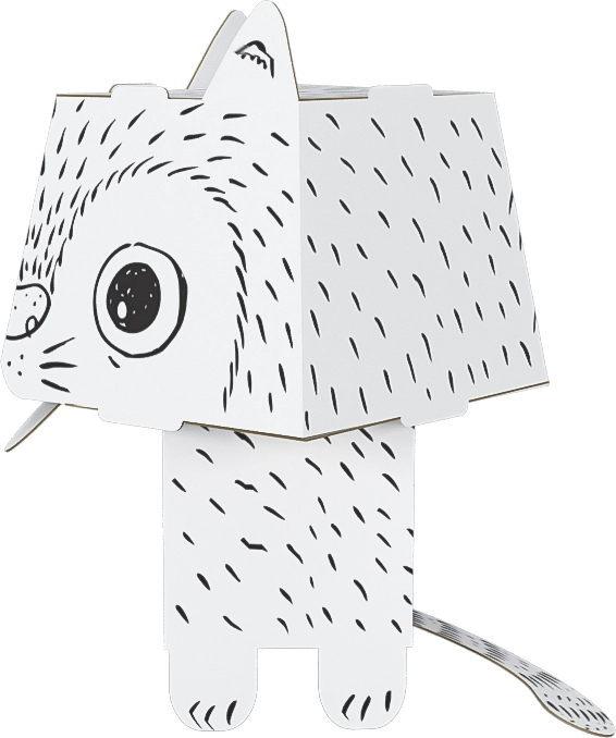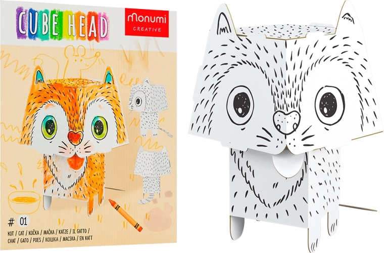 Opdag kreativ underholdning for børn: et pap 3D-puslespil til farvelægning i form af en kat. Modellen af kvalitets hvid karton har præcist udskårne dele, som nemt samles uden lim og saks. Stabil, let og klar til farvelægning med farveblyanter, tuscher, markere og maling.
