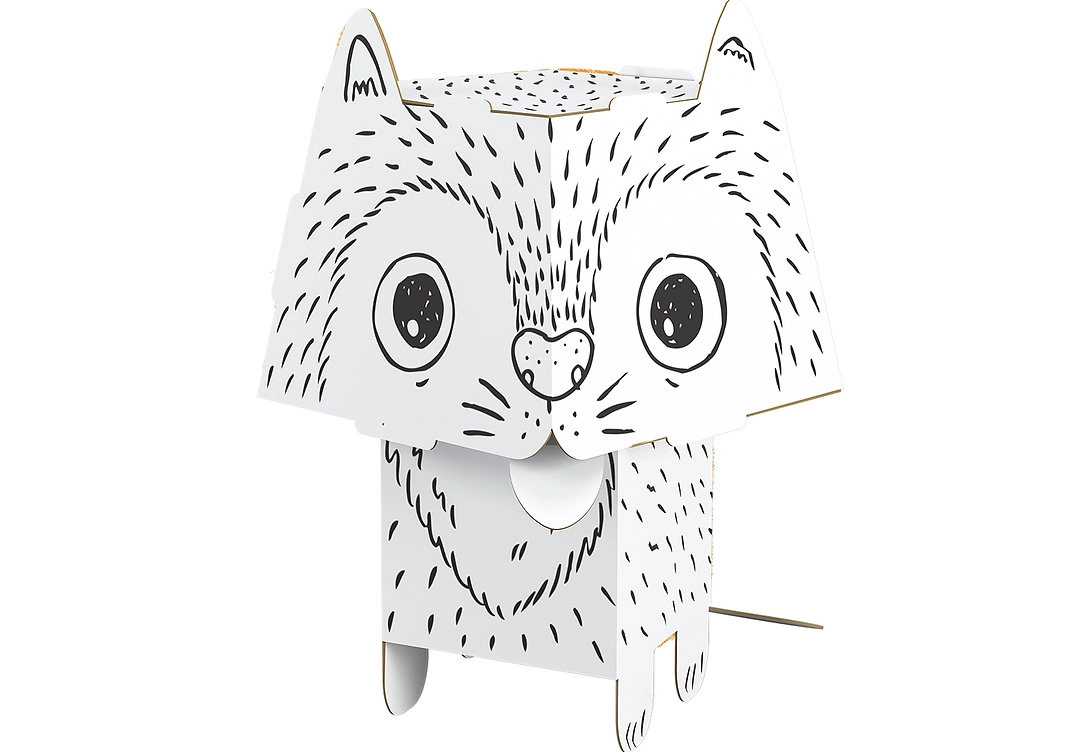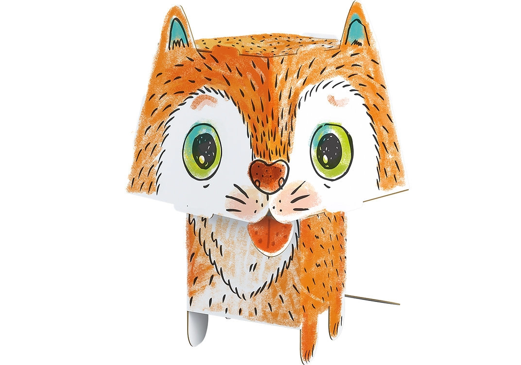 Denne søde kat med stort hoved begejstrer små kreative sjæle. Takket være de præcist udskårne dele går samlingen let og kræver ingen værktøj. På bagsiden af emballagen finder du en overskuelig billedvejledning.