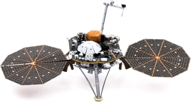 Modellen InSight Mars Lander har udfoldelige landingsben og videnskabelige instrumenter for en realistisk gengivelse af rumsonden.