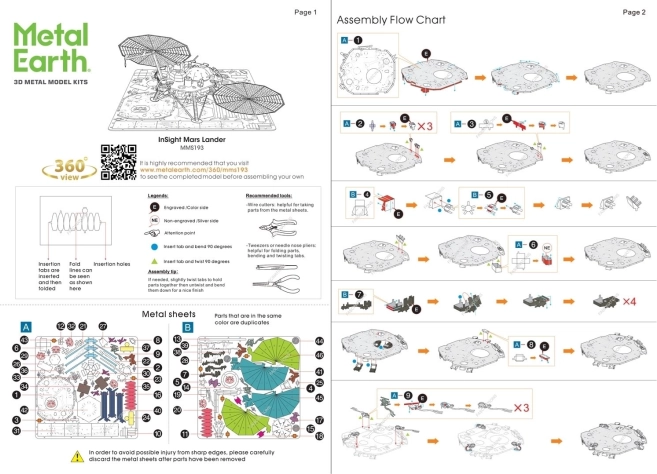 METAL EARTH 3D-puslespil InSight Mars Lander er en fascinerende byggeudfordring, der kombinerer detaljeret lasergravering med et autentisk udseende. Kvadratiske stålark forvandles til en stilfuld dekoration, velegnet ikke kun til hjemmet, men også til kontor eller skole.