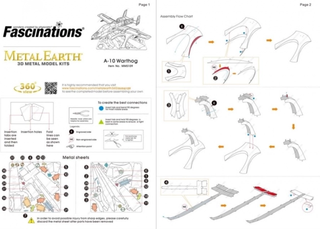 Fjern de enkelte dele fra metalpladerne; brug om nødvendigt små bidetænger (medfølger ikke). Delene samles ved hjælp af låse bestående af en tap (krog) og et hul. Bøj tappen med små, tynde tænger (medfølger ikke), og saml gradvist alle låse, indtil der fremstår et meget realistisk mesterstykke!