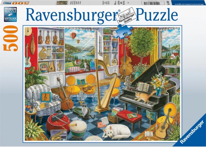 Oplev kvalitetssamling med Ravensburger puslespil – motivet Musikværelse med 500 brikker byder på afslapning, træning af koncentration og et smukt slutbillede i størrelsen ca. 49 × 36 cm.