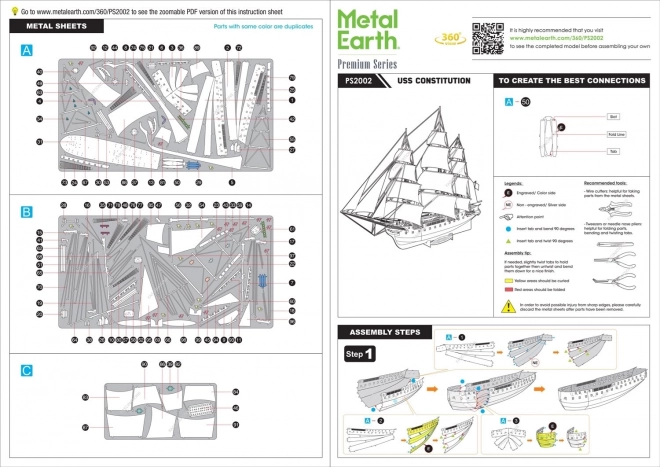 Oplev magien ved maritime historie med Metal Earth Premium Series og skab hjemme din egen ikoniske USS Constitution. Delene i rustfrit stål er præcist laserskåret og suppleret med fin gravering, som giver modellen et autentisk udseende. Den færdige model tager sig flot ud på et stativ med skibets navn og bliver en pynt i ethvert kontor eller arbejdsværelse.