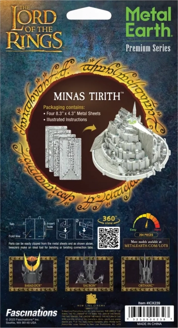 Byg en bjergtagende replika af byen Minas Tirith fra Ringenes Herre-universet. De metalbaserede 3D-puslespil METAL EARTH består af præcist udskårne stålplader med fin lasergravering, som fremhæver hver arkitektonisk detalje af mure, tårne og terrasser.