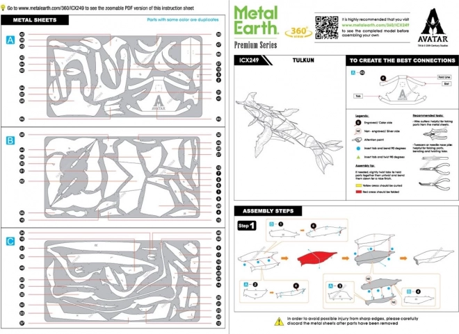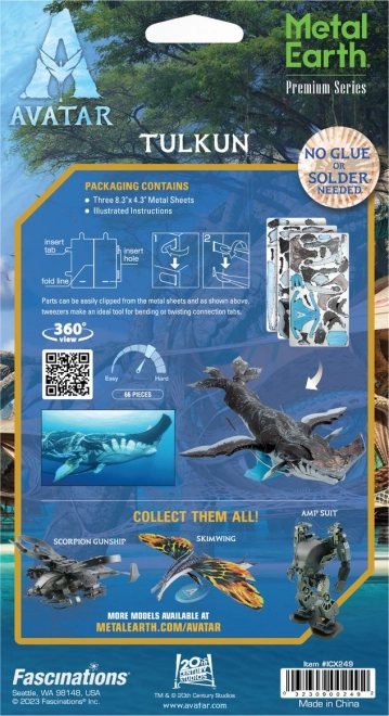 Oplev magien i AVATAR-universet med den metal 3D-model METAL EARTH Premium Series: Tulkun. Byg en detaljeret replika af det ikoniske havvæsen af lasergraverede stålplader. Modellen er ideel til filmfans, tekniske byggesæt og stilfuld dekoration. Realistiske detaljer, imponerende look og en sjov udfordring for dygtige hænder.