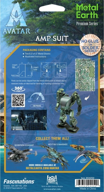 Premium-serien fra Metal Earth præsenterer en realistisk model af AMP Suit fra Avatar-universet, udskåret af stålplader ved hjælp af lasergravering. Hver del passer præcist sammen, så du uden lim eller lodning skaber et imponerende samlerobjekt med autentiske detaljer og et karakteristisk militært udtryk.