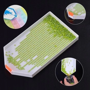 - Lærred med fortrykt billede og klæbende lag, applikationspen, bakke, voks, sæt farvede sten, symbollegende